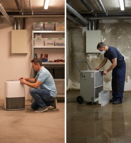 Se l'allagamento è lieve e localizzato, i proprietari di casa possono spesso gestire la bonifica con deumidificatori, ventilatori e una buona ventilazione.