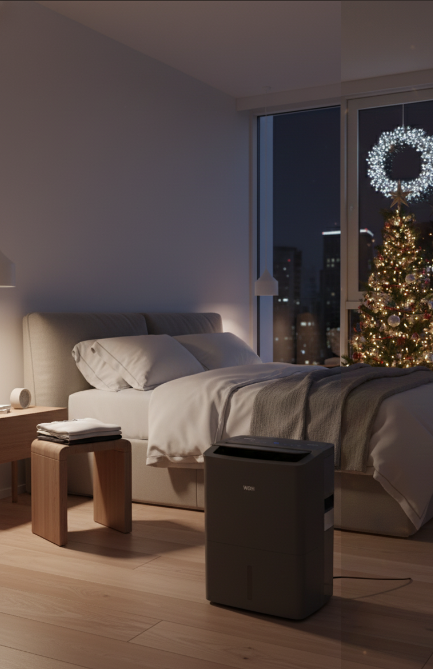In questi casi, può essere utile un deumidificatore silenzioso, come il nostro WDH-214US. Aiuta a ridurre costantemente l'umidità senza disturbare il sonno, riducendo così la condensa sulle finestre e il rischio di formazione di muffa.